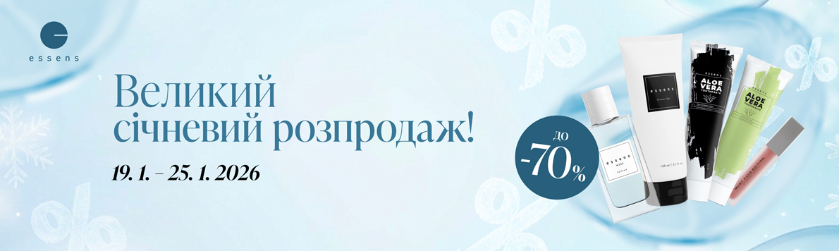 В ESSENS ми підготували для вас Великий січневий розпродаж, під час якого ви можете придбати свої улюблені продукти зі знижками до –70 %.