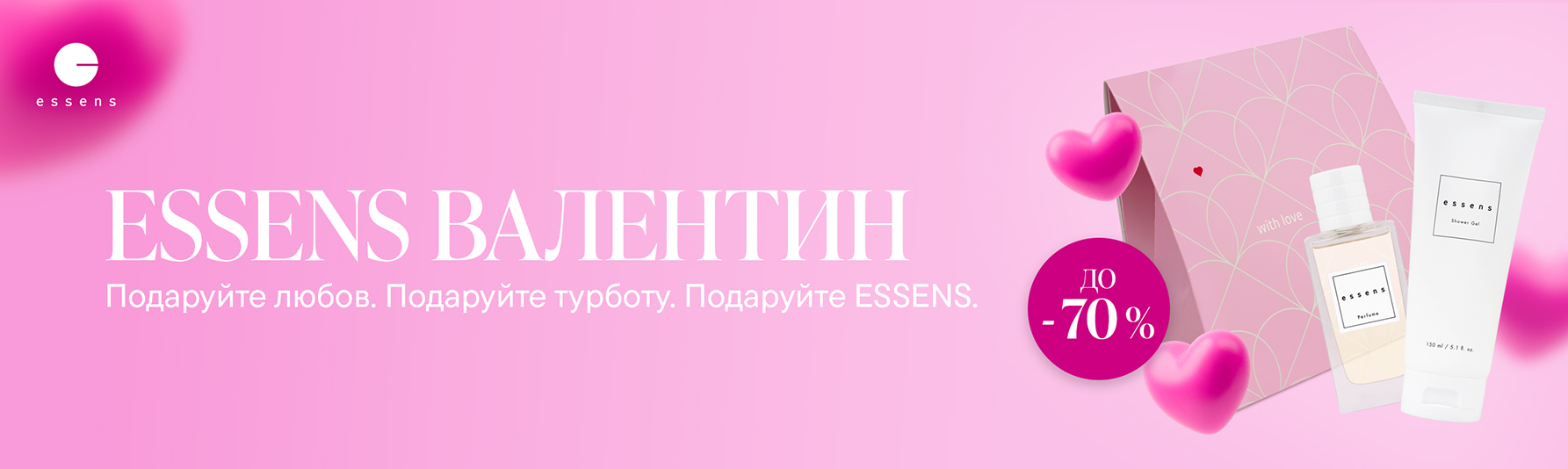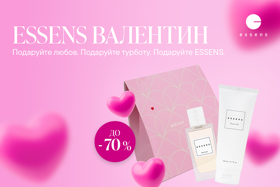 До Дня Святого Валентина, ми підготували для вас знижки до 70% на вибрані продукти, завдяки яким це ідеальний час потішити себе та своїх близьких. На вас чекає широкий вибір ароматів, косметики та наборів ESSENS.